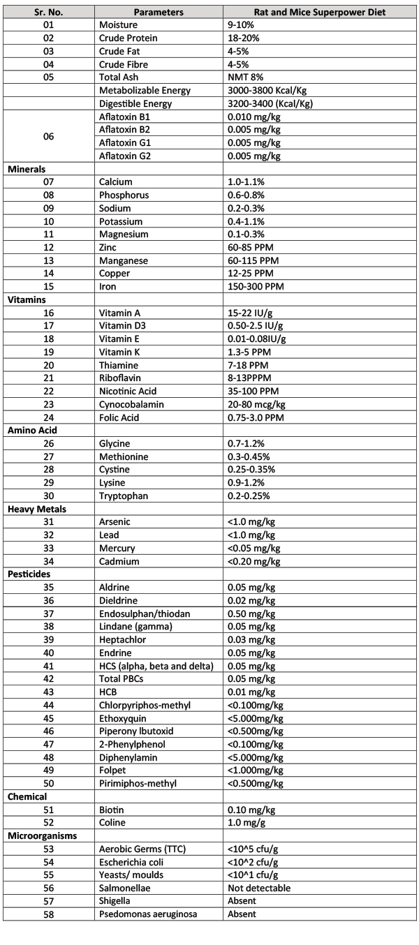 Amrut 2000SP Guinea Pig Superpower Diet scientifically formulated to provide a complete life-cycle nutritionally balanced diet for animals in Lab research. It designs for breeding, growth and complete maintenance of Guinea Pig. The diet is enriched with Vitamin C and fibre rich.